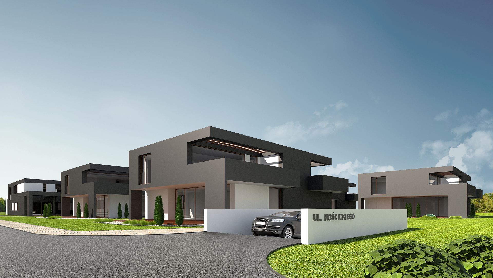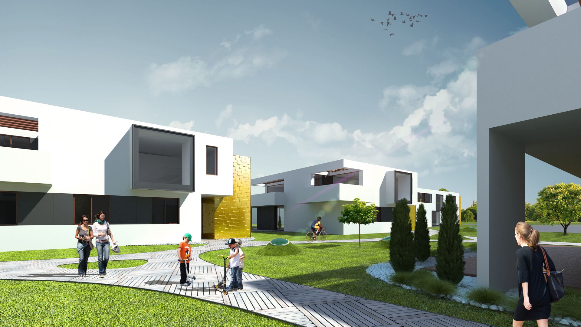 Zaprojektowano osiedle składajace się z 5-ciu budynków mieszczących po dwa lub trzy apatramenty z tarasami w każdym z nich. Powierzchnie apartamentów wahaja się od 68 do 183 m2 nie licząc tarasów.