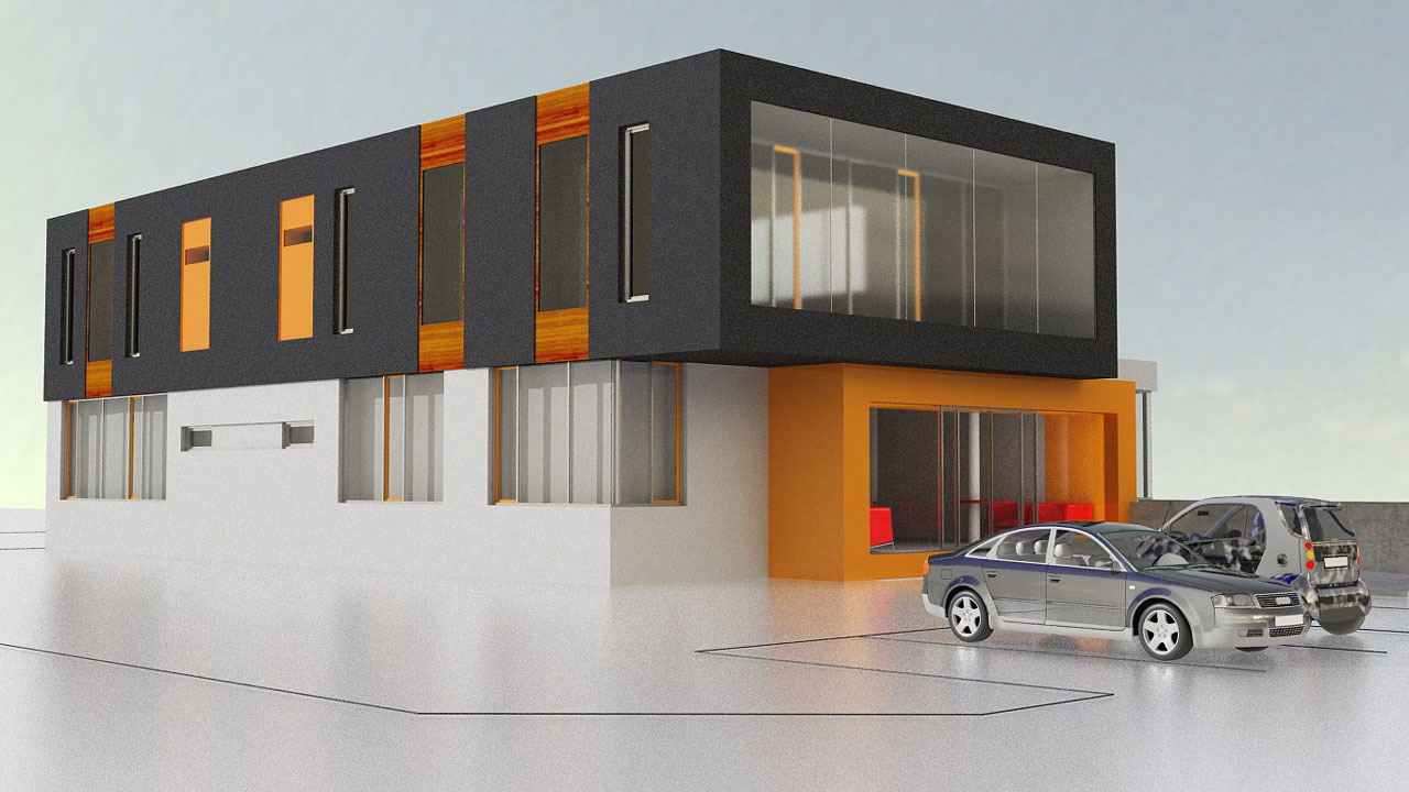 Koncepcja budynku biurowego - siedziba firmy Zakład Robót Inżynieryjnych Chrobok. Bojszowy Nowe.