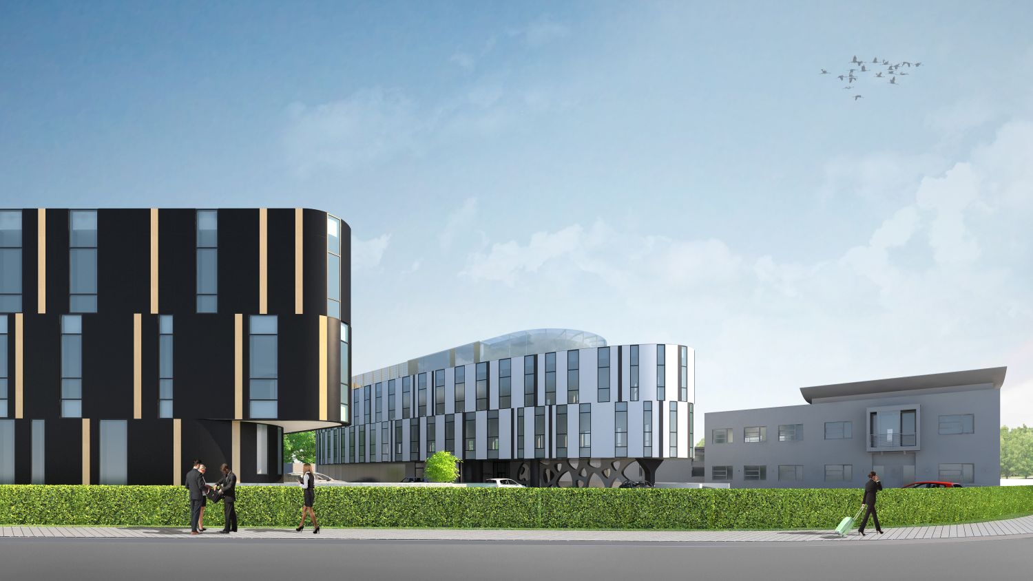 Rzut budynku oparto na planie elipsy, a jego elewacja stanowi negatyw elewacji obiektu FBC 1 wchodząc z nim w swego rodzaju harmonijną korelację kontrastów. Plac przed wejściem głównym zaprojektowano w formie miniogrodu o charakterze miejskim natomiast ostatnia (pomniejszona) kontygnacja posiada wyjścia na dach zielony.