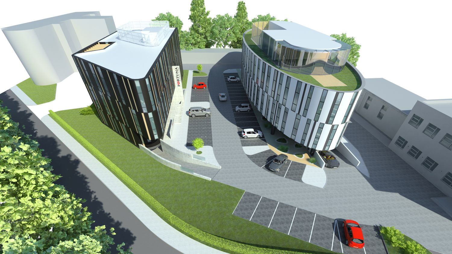 Budynek biurowy Fortuna Business Center 2 to kolejny etap inwestycyjny w obszarze działki inwestora zlokalizowanej w Jaworznie (woj. śląskie). Prezentowany obiekt, podobnie jak jego poprzednik jest zaprojektowany w standardzie klasy A.