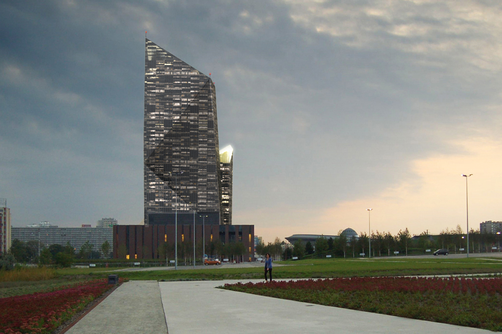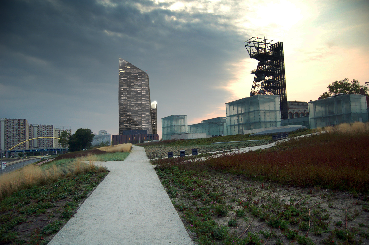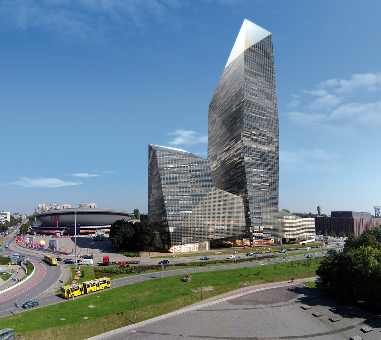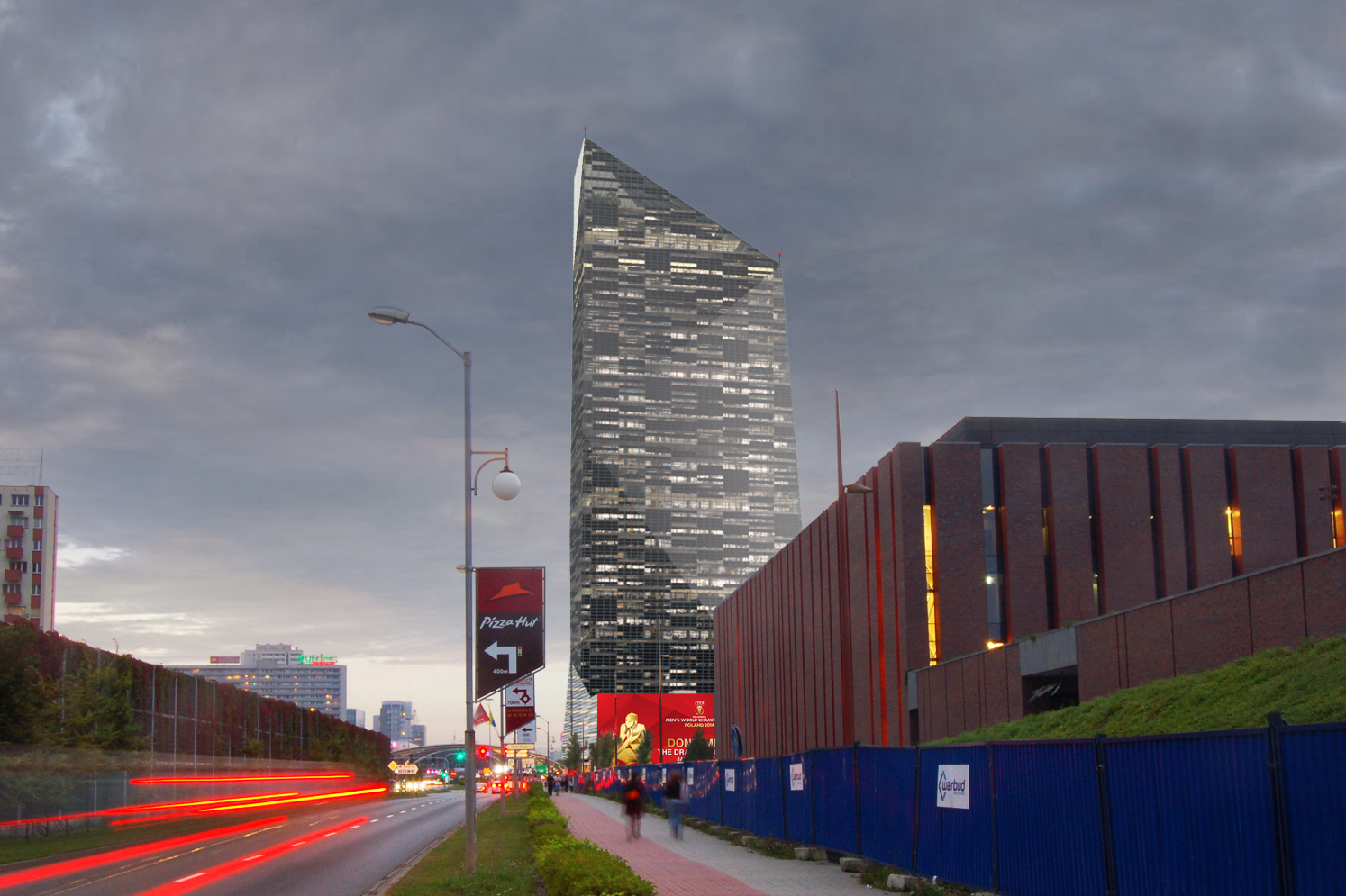 Koncepcja budynków biurowo usługowych przy katowickim Spodku.